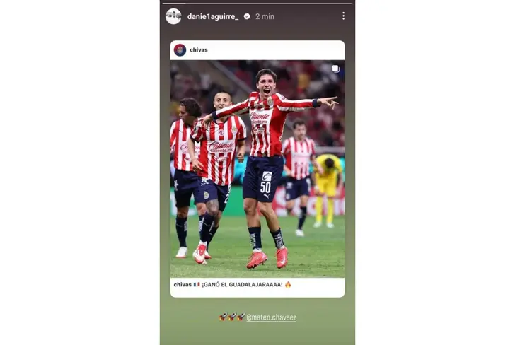 La euforia desatada por el triunfo ante el América contagió a todos en el entorno rojiblanco. Incluso Aguirre, a pesar de su nula participación, se sumó a la celebración a través de redes sociales, felicitando a su compañero Mateo Chávez por su destacada actuación. Un gesto que, si bien refleja su compromiso con el equipo, contrasta con su realidad en Chivas.