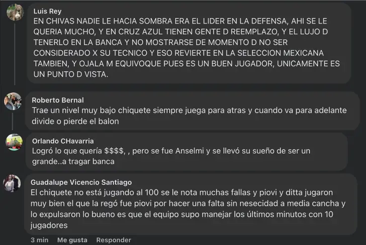 Tanto la afición de Chivas como la de Cruz Azul han expresado su descontento con el desempeño de Jesús Orozco Chiquete. Los seguidores rojiblancos se sienten decepcionados por la decisión del jugador de abandonar el equipo, mientras que los aficionados cementeros cuestionan su nivel y su falta de adaptación al sistema de juego de Cruz Azul. Las críticas han sido duras y constantes, generando un ambiente de presión para el defensor mexicano.