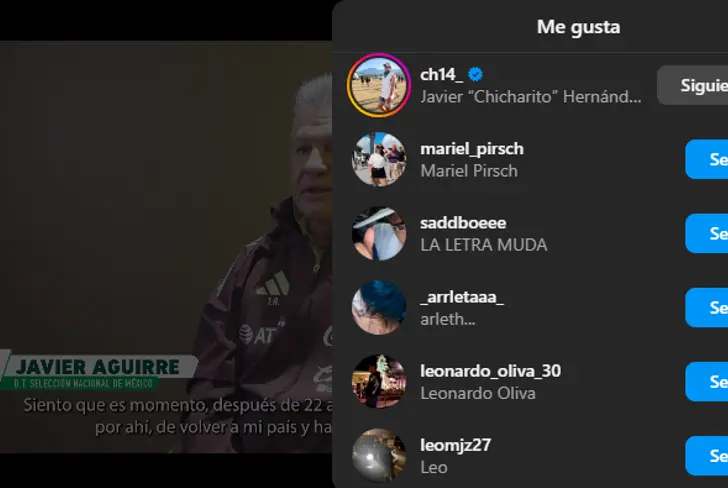 Javier Aguirre está de vuelta con la Selección Mexicana y ayer, en un horario y día algo atípico para hacer anuncios o publicaciones, la FMF presentó un vídeo en el que se le ve al "Vasco" hablar sobre varios temas referentes al Tri, lo curioso de ello es que "Chicharito" aprovechó para dejar un sutil, pero claro guiño al seleccionado nacional al darle like a la publicación del clip:
