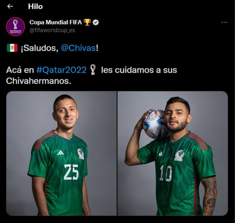 Mientras la única esperanza de los wilos sería Guillermo Ochoa, los representantes de Chivas apuntan a ser importantes para la selección mexicana y la FIFA lo sabe por lo que en su cuenta oficial subieron una fotografía de Alexis Vega y Roberto Alvarado mandando un saludo al Rebaño Sagrado, dándole la importancia que merece el equipo más grande de México.