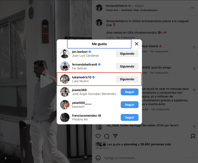El mediocampista del Real Madrid ha interactuado en todas las imágenes que cuelga Fernando Hierro sobre Chivas, como entrenamientos o incluso el más reciente título alcanzado tras derrotar al Athletic Bilbao en la Copa del Árbol de Gernika. La relación de hierro con el jugador croata Luka Modric también pasa por la cercanía y la amistad que tiene la esposa de Modric con la de Hierro.