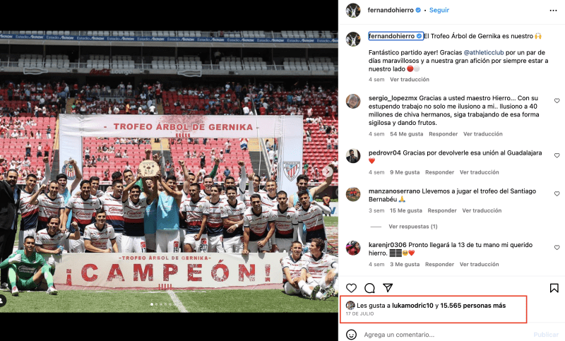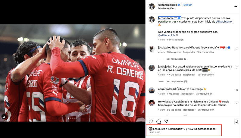 Desde la llegada de Fernando Hierro al conjunto rojiblanco, el equipo ha cambiado sustancialmente desde la incorporación de Paunovic como entrenador del primer equipo como también en la gestión de reclutar nuevos elementos para cambiarle la cara a Chivas. Cada gestión de Hierro ha sido publicada en sus redes sociales, las mismas que ha recibido reacciones positivas de Luca Modric.